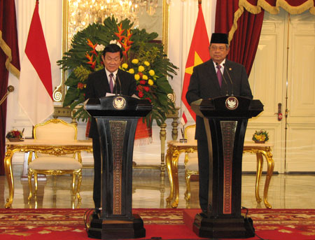Tổng thống Susilo Bambang Yudhoyono nồng nhiệt chào đón Chủ tịch nước Trương Tấn Sang và đoàn đại biểu cấp cao Việt Nam thăm Indonesia; đánh giá cao ý nghĩa của chuyến thăm cấp Nhà nước đầu tiên của Việt Nam tới Indonesia kể từ năm 2001; cho rằng kết quả tốt đẹp của chuyến thăm sẽ góp phần củng cố và tăng cường hơn nữa quan hệ hữu nghị truyền thống và hợp tác toàn diện tốt đẹp sẵn có giữa hai nước.