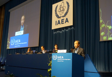 Phát biểu khai mạc, Tổng giám đốc IAEA Yukiya Amano khẳng định tầm quan trọng của việc sử dụng công nghệ hạt nhân phục vụ phát triển kinh tế xã hội, nhất là phát triển bền vững trong chương trình nghị sự sau 2015, phát triển điện hạt nhân gắn với ứng phó biến đổi khí hậu, giúp các nước thành viên thực hiện các mục tiêu phát triển về y tế, nông nghiệp, quản lý ngồn nước và năng lượng. Tổng Giám đốc Amano nhấn mạnh hỗ trợ kỹ thuật của IAEA cho các nước đang phát triển, giúp đỡ các nước mới lựa chọn phát triển điện hạt nhân, chia sẻ kinh nghiệm với các nước về công nghệ điện hạt nhân, bảo đảm an toàn hạt nhân cũng như quản lý chất thải phóng xạ. Theo Tổng Giám đốc Amano, trên thế giới hiện có 437 lò phản ứng hạt nhân đang hoạt động tại 30 quốc gia, đóng góp 11% cho tổng sản lượng điện toàn thế giới; 70 lò phản ứng đang được xây dựng là tại Châu Á và đây sẽ là châu lục sẽ phát triển nhanh nhất và cần nhiều điện năng nhất.