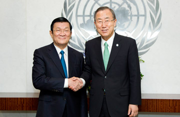 | Chủ tịch nước Trương Tấn Sang và Tổng Thư ký LHQ Ban Ki-moon tại trụ sở LHQ, tháng 7/2013. |