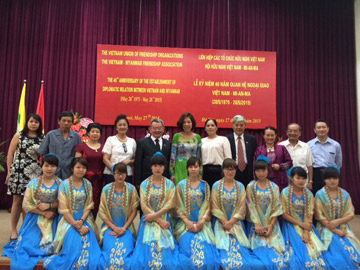 Đến dự Lễ kỉ niệm có bà Nguyễn Thị Hoàng Vân, Phó Chủ tịch Liên hiệp các tổ chức hữu nghị Việt Nam, ông Chu Công Phùng, Đại sứ, Chủ tịch Hội Hữu nghị Việt Nam – Myanmar, ông Win Hlaing, Đại sứ Myanmar tại Việt Nam cùng đông đảo đại diện các cơ quan, tổ chức, cán bộ nhân viên sứ quán, các học sinh, sinh viên Myanmar đang sinh sống và học tập tại Việt Nam…