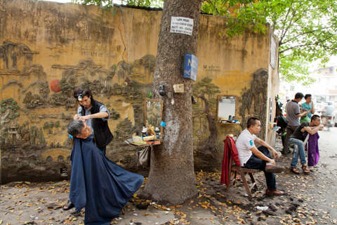 | Một thợ cắt tóc tại Hà Nội, năm 2014. |