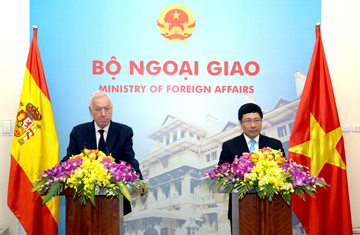 | Phó Thủ tướng, Bộ trưởng Ngoại giao Phạm Bình Minh và Bộ trưởng Ngoại giao và Hợp tác José Manuel García-Margallo. (Ảnh: Minh Châu) |