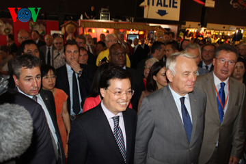 Sáng 6/9, Thủ tướng Pháp Jean-Marc Ayrault và Đại sứ Việt Nam tại Pháp Dương Chí Dũng đã cắt băng khánh thành gian hàng Việt Nam tại Hội chợ.
