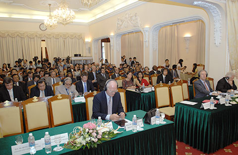 | Các vị Đại sứ, Trưởng cơ quan đại diện nước ngoài tại Việt Nam tham dự Hội thảo Khoa học. Ảnh: Quang Hoà/TGVN |