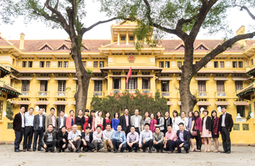 | Lãnh đạo và cán bộ, nhân viên Vụ Tổng hợp kinh tế trước trụ sở Bộ Ngoại giao. |