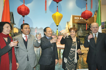 | Bộ trưởng VH-TH&DL Hoàng Tuấn Anh (giữa), Đại sứ VN tại Italy Nguyễn Hoàng Long trong Lễ khai mạc Những ngày văn hóa Việt Nam tại Italy 2013. |