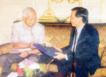 | Chủ tịch Hội đồng cơ mật Prem Tinsulanonda và Đại sứ Đỗ Ngọc Sơn, năm 2002. |